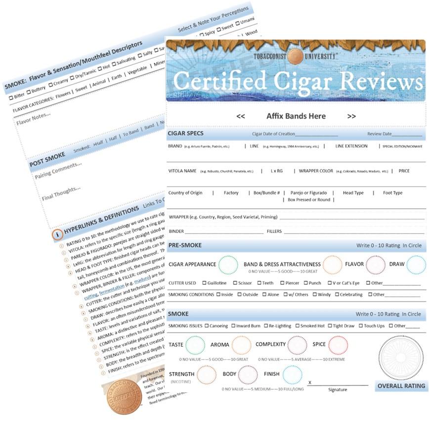 Click on the image above for the free Certified Cigar Reviews Worksheet PDF. You can fill it out by hand or use your computer to keep it digital. Enjoy this .pdf as a printable document which you can keep for personal use or share it with your friends and/or customers. We hope this empowers you to take your knowledge and pleasure to the next level. And if you like what you see, please thank your local Certified Retail Tobacconists!